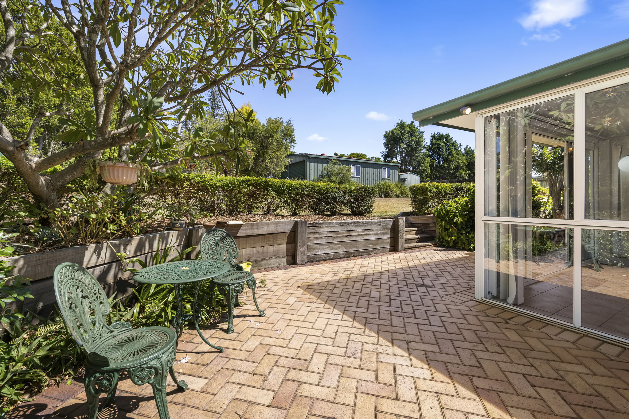• Built in extension for covered entertaining/ secure storage