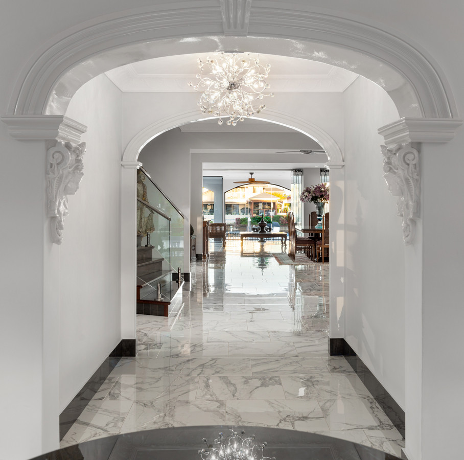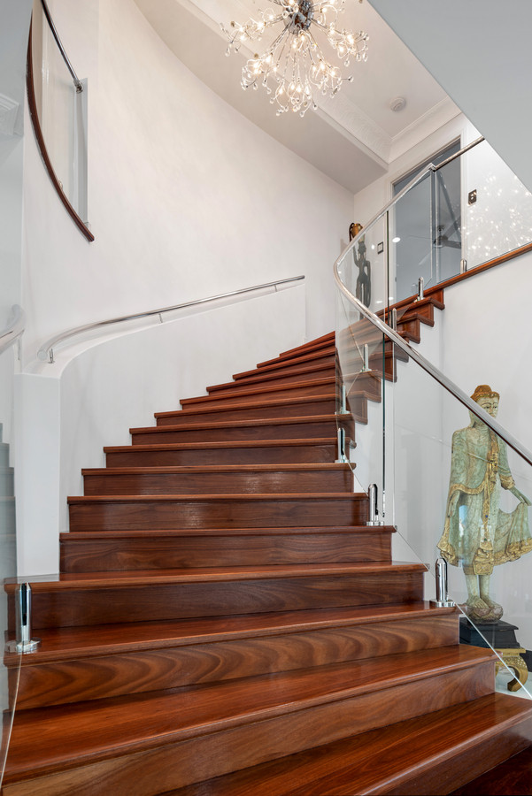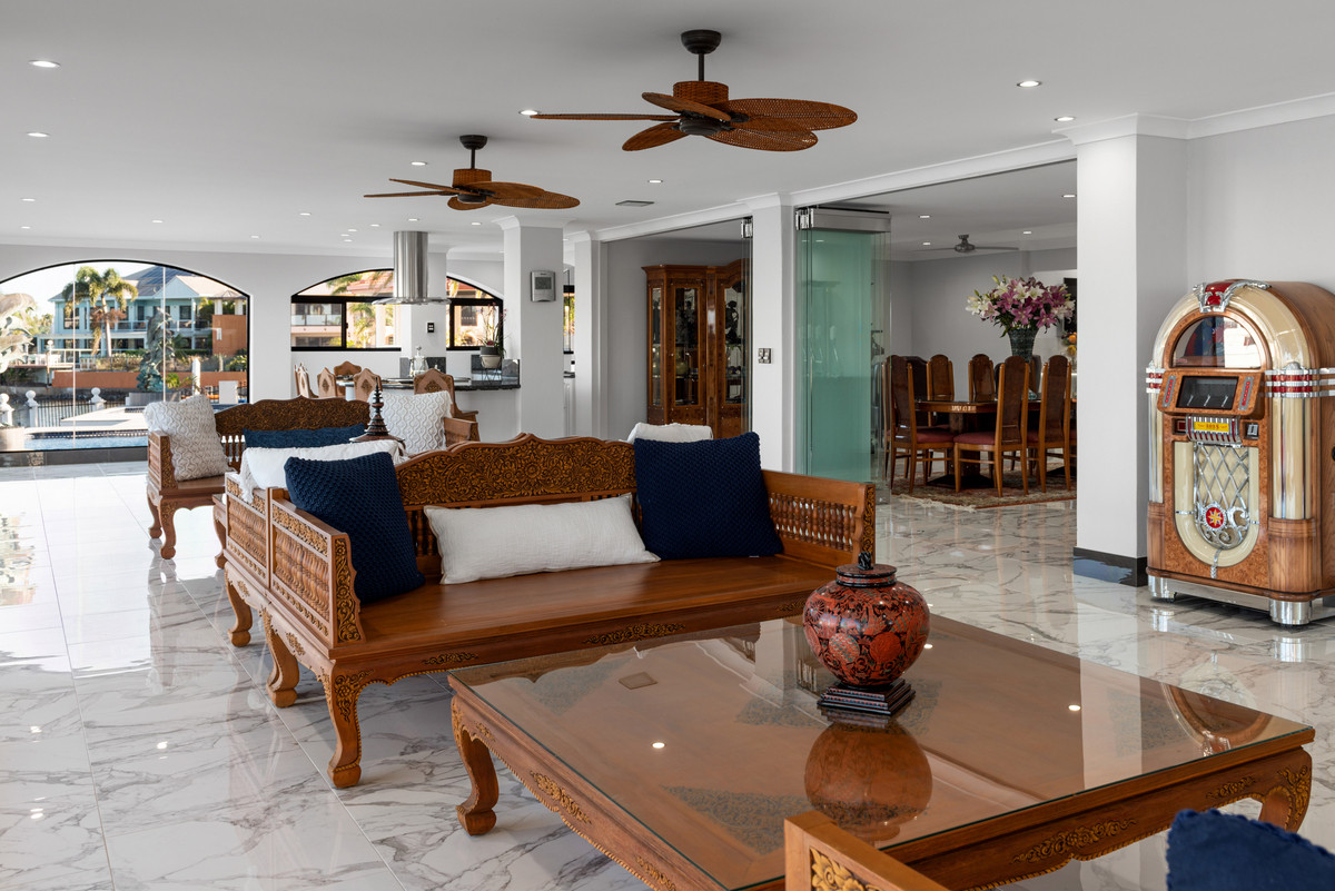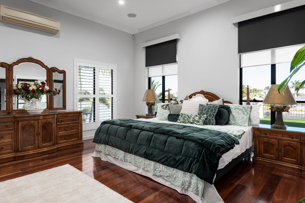 With a commanding street presence, due east aspect and a picturesque facade, move inside the grand entrance of this stunning 1,184sqm home. An open plan lower level is framed by wrap-around, floor-to-ceiling glass, revealing open water and canal views out to Moreton Bay.