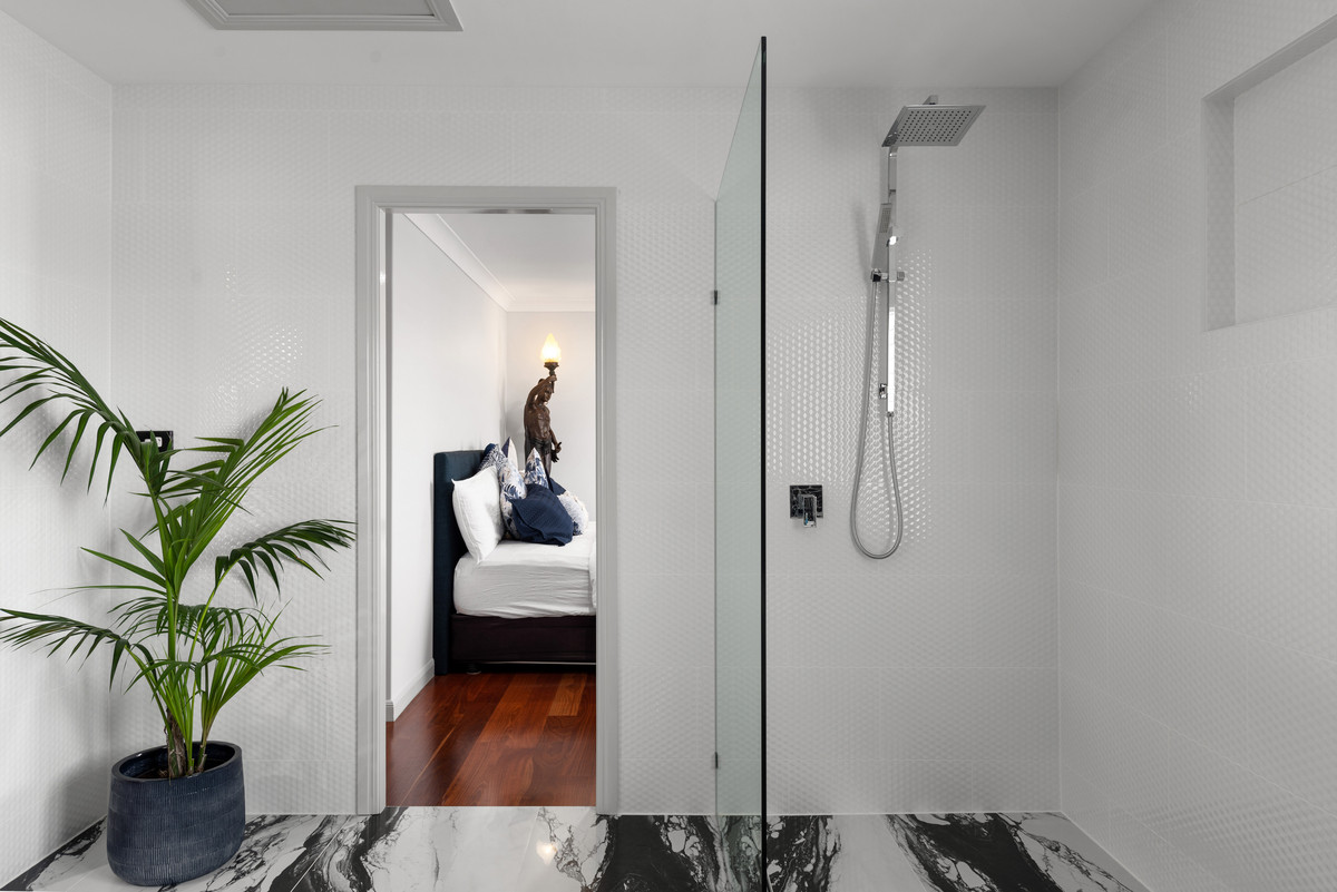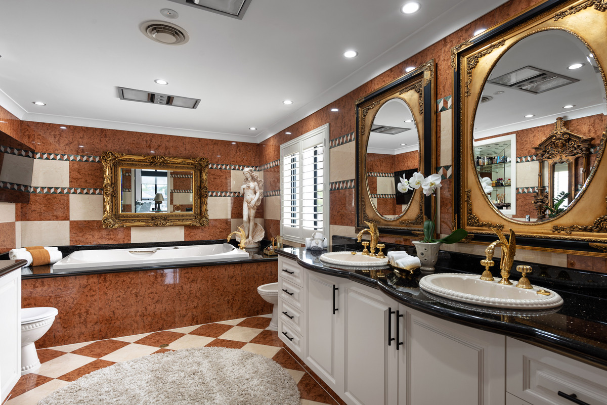 The master suite features soaring 3.3m ceilings, a grand light-filled ensuite incorporating the desirable high-end inclusions of a bath, and lavish double vanity with granite benchtop, 14-carat gold tap wear and more statement pieces throughout with a large walk-in robe completing the master suite.
