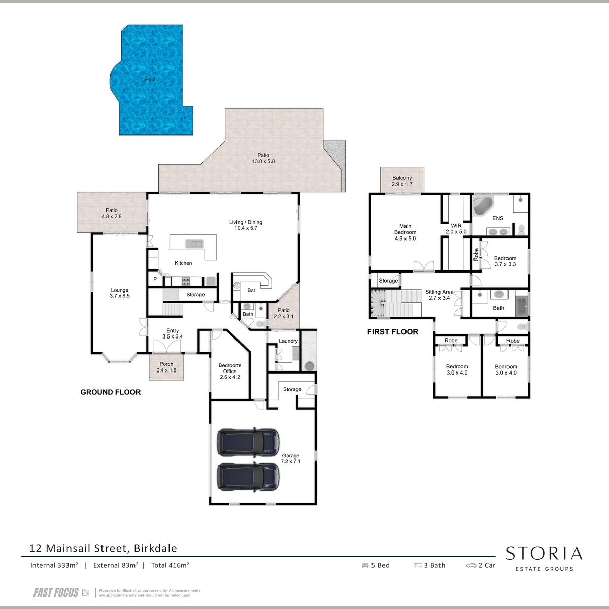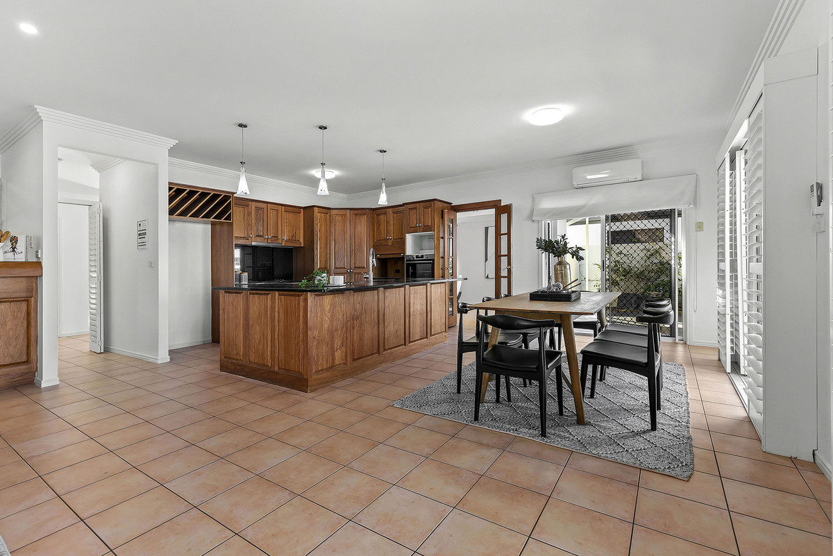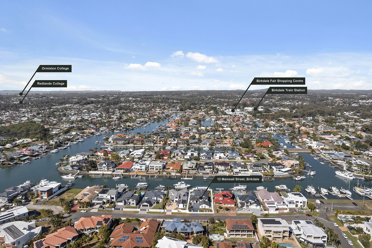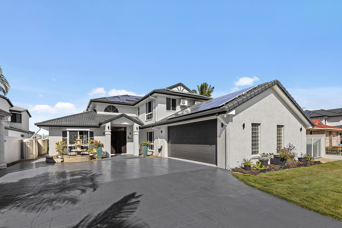 A sophisticated home completed with grand proportions, 12 Mainsail Street is a home that needs to be seen to be appreciated. Situated on a sprawling 903sqm South facing allotment, with views down the canal, this location is unmatched and one many rival. Space and light abound in the 6m soaring entry. Entering the home you’re greeted with a deluxe, gourmet kitchen featuring granite bench-tops, overlooking the oversized concrete pool and the canal.