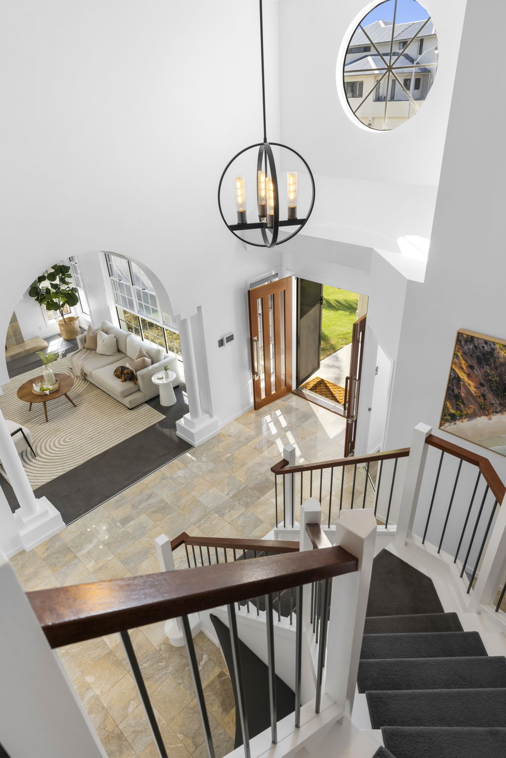 From the moment you arrive, the home makes an immediate impression. A dramatic 6-metre entry void and soaring raked ceilings create a true sense of scale, while arched windows, balanced proportions and expansive glazing flood the interiors with natural light. Marble-tiled floors, refined neutral finishes and multiple living and dining zones deliver effortless family functionality, anchored by a working fireplace for cosy winter evenings.