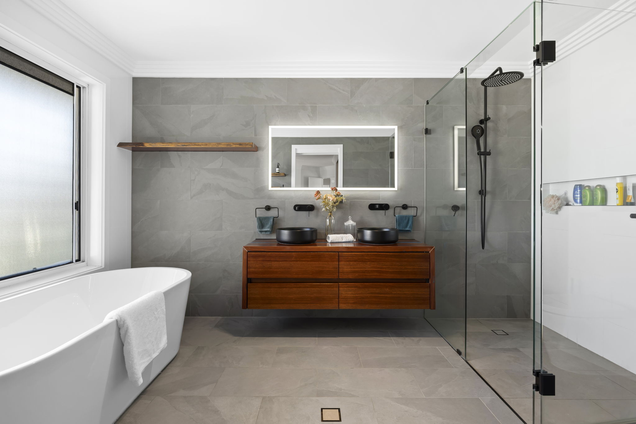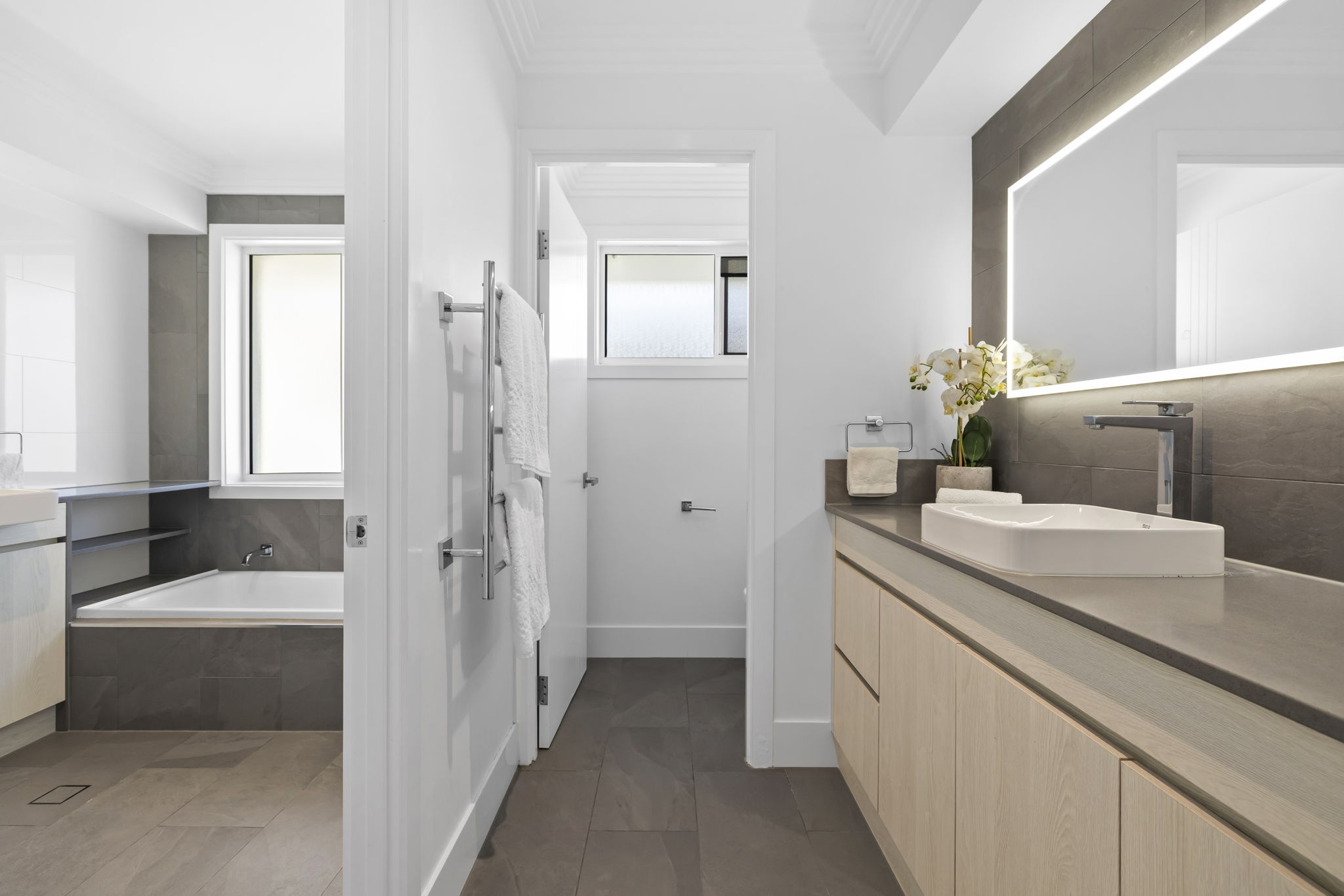 At the centre, the gourmet kitchen has been designed for serious entertainers, featuring 40 mm stone benchtops, Bosch appliances with induction cooking, and an integrated Liebherr fridge, flowing seamlessly to the home’s generous indoor and outdoor spaces.