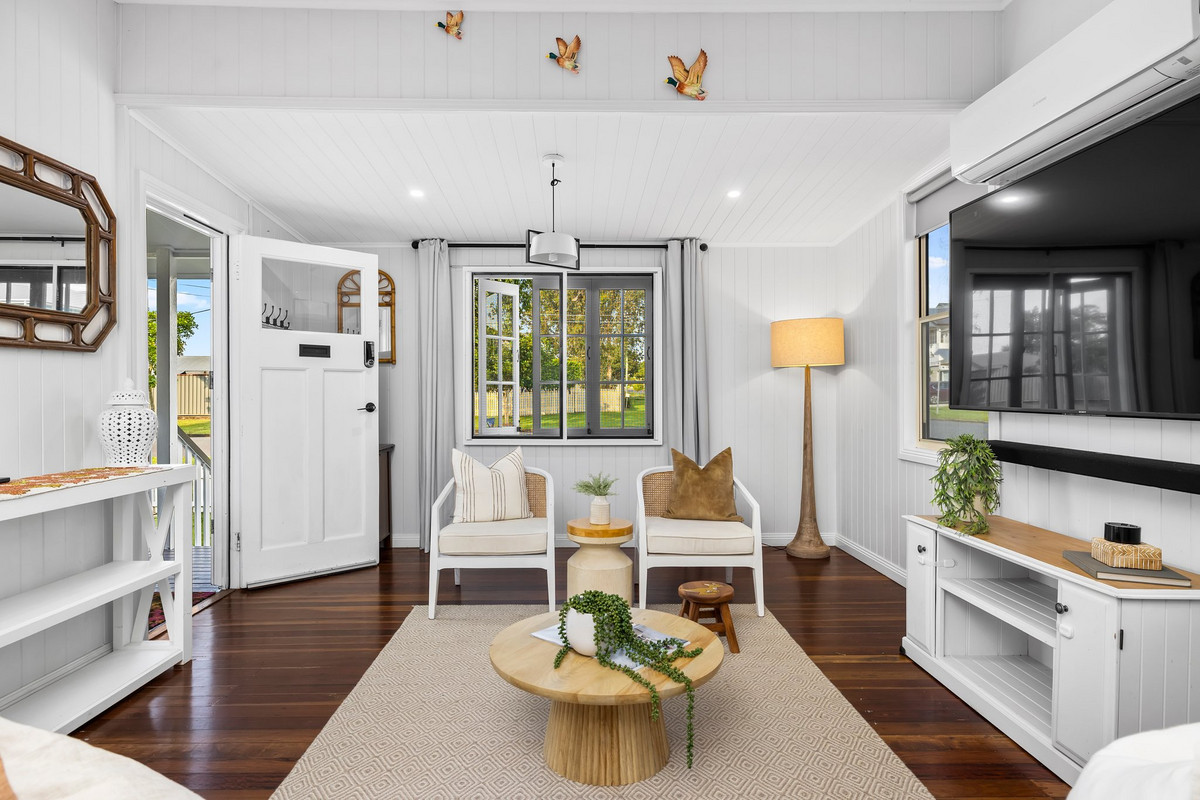 Set behind a charming white picket fence, the home unfolds with thoughtful design and elegant interiors. Traditional VJ walls, high ceilings and French doors blend seamlessly with stylish contemporary finishes. The layout is bright and welcoming, with an effortless flow from front to back.