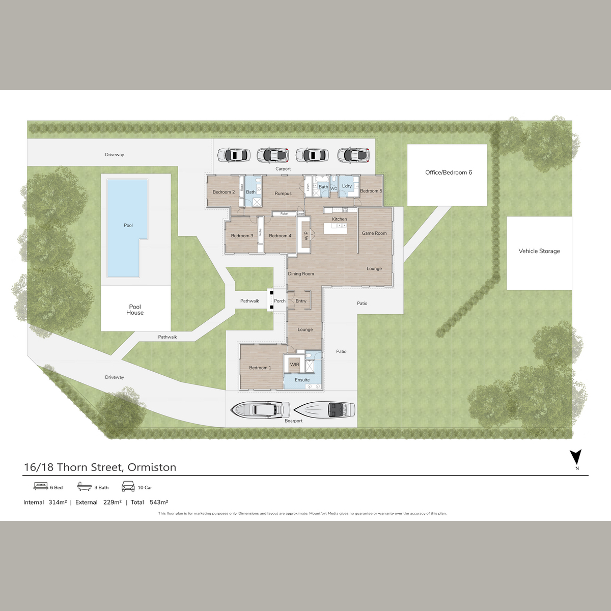 Functionality meets sophistication with side access for larger vehicles, an abundance of storage, and enough space for a 10-car accommodation, ensuring convenience without compromise. A dedicated office within the separate shed provides the ideal work-from-home setup, offering privacy and tranquillity away from the main residence. See further features below: