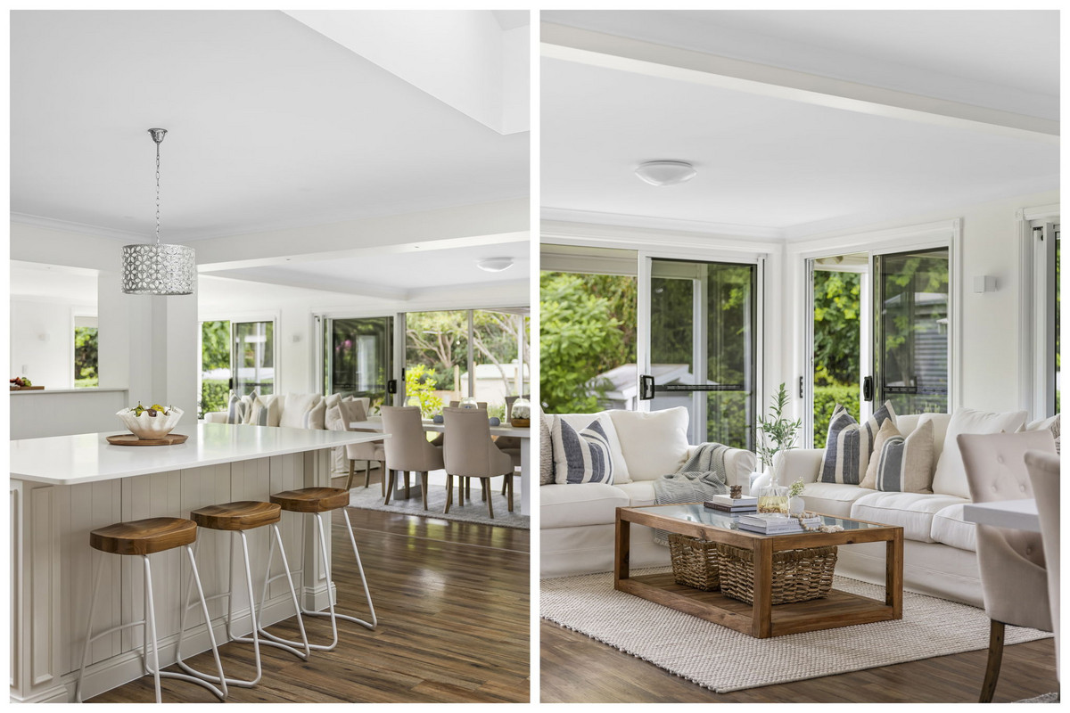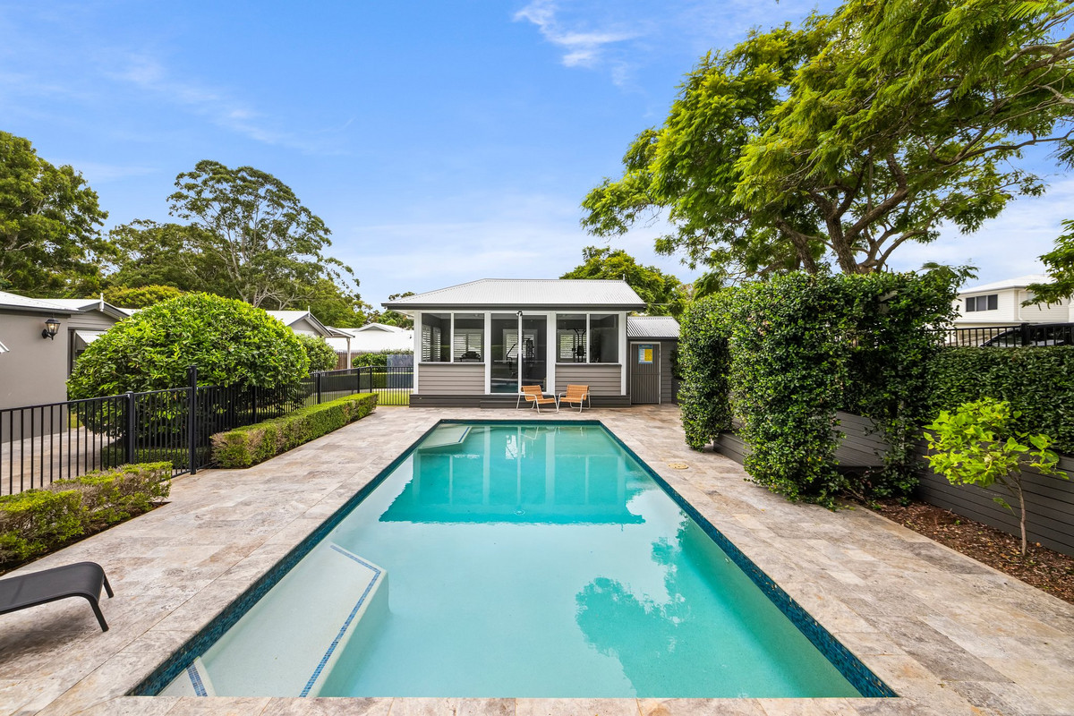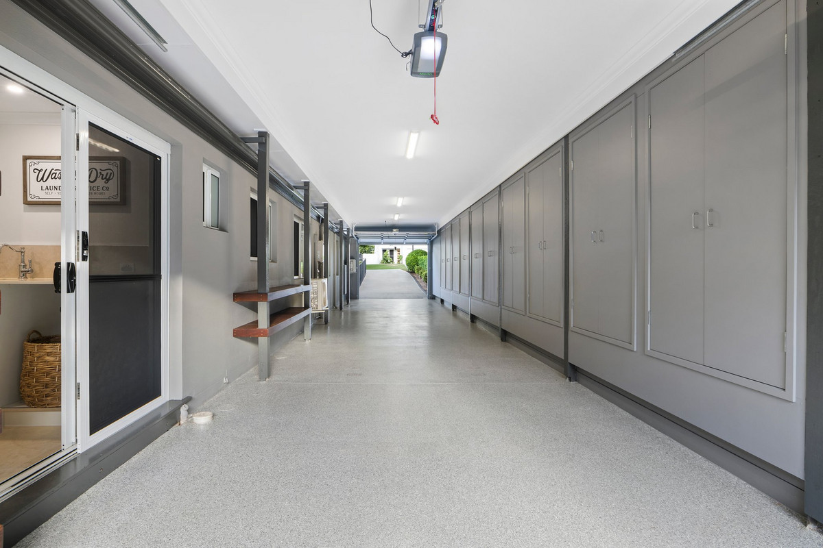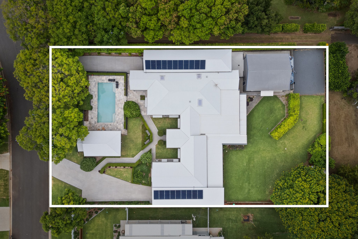 Beyond the walls of this magnificent home, an outdoor oasis awaits. The sundrenched alfresco area invites effortless entertaining, overlooking the sprawling lawns and greenery, while a charming chicken coop adds a touch of country charm to this luxurious sanctuary The travertine-finished pool shimmers under the Queensland sun that is coupled with an elegant pool house, offering a serene retreat for relaxation or lively gatherings.