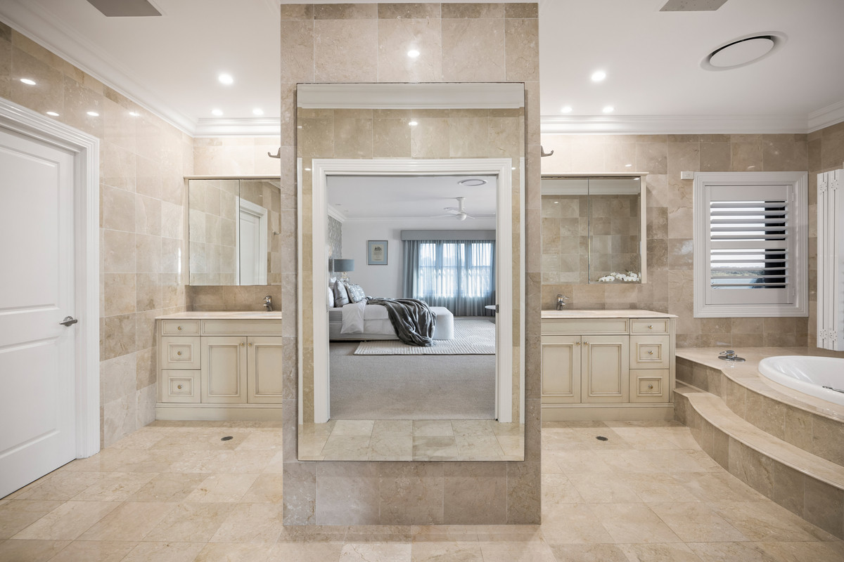 Inside, Elysium whispers tales of meticulous craftsmanship and unyielding quality. Every corner of this residence has been lovingly curated, with marble bathrooms that speak of timeless sophistication, and terracotta and Italian glazed porcelain tiles that tell a story of heritage and resilience. The custom cabinetry, a creation by Jason Gannon Cabinet Makers, blends seamlessly into the home’s narrative, where beauty and functionality dance in perfect harmony. The kitchen, with its high-end Smeg appliances—including a 90cm oven, induction cooktop, and microwave—is a chef’s dream, a space where culinary creations come to life.