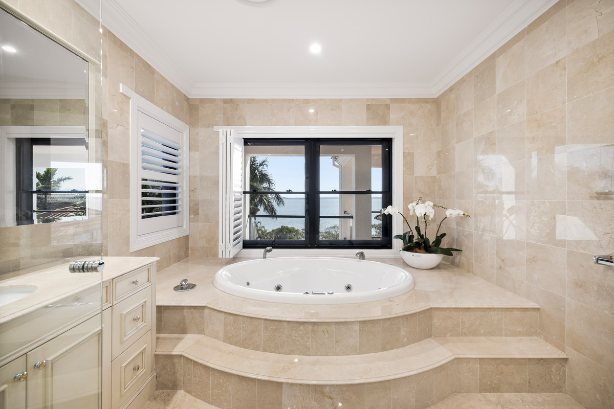 – A private primary bedroom retreat on the top floor, complete with an oversized WIR and a floor-to-ceiling marble bathroom offering breathtaking panoramic bayside views