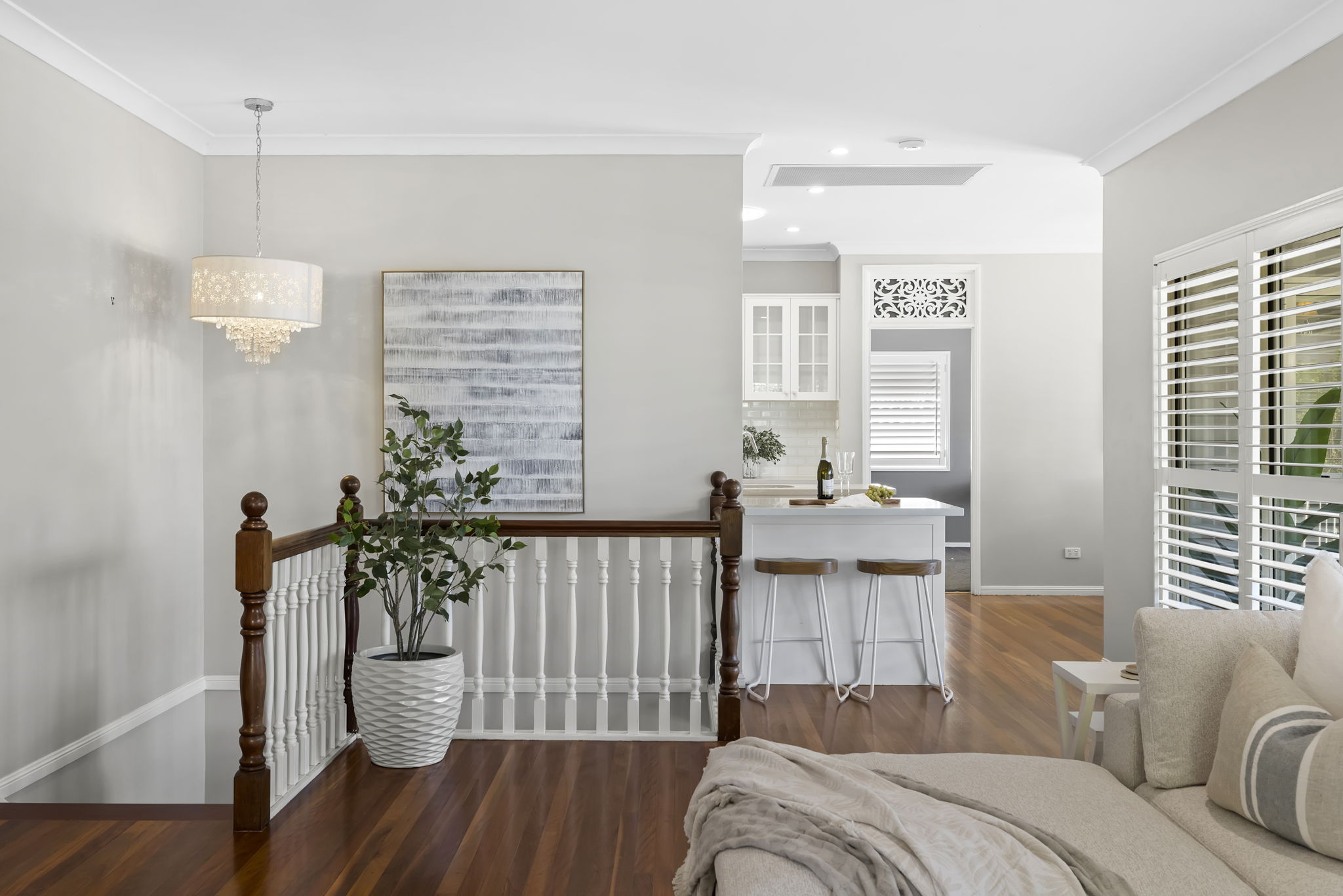 • High ceilings and multiple living zones upstairs