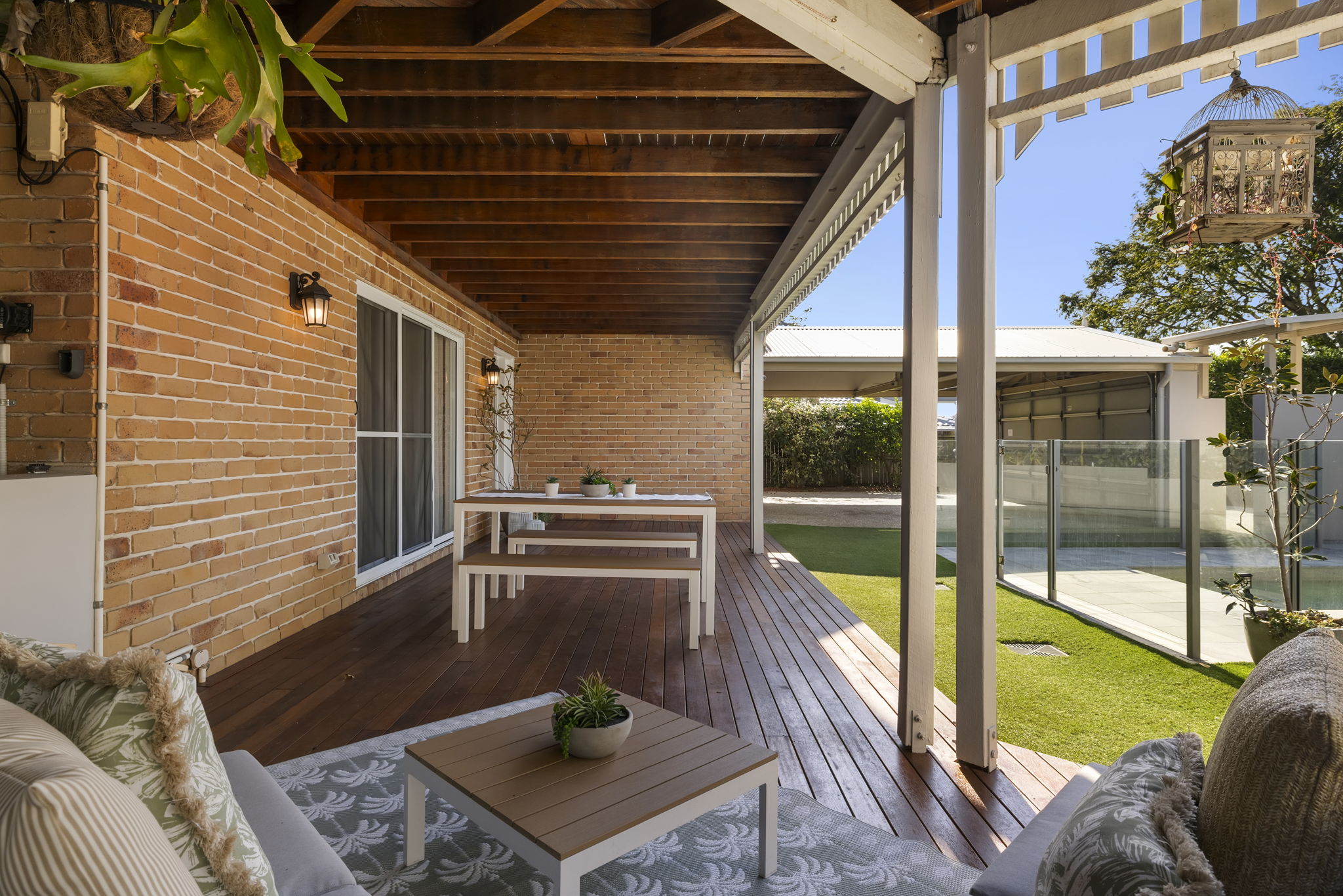 Outdoors, the recently renovated pool area creates a resort-style atmosphere, complemented by multiple external breakout spaces, a fire pit zone, a grassed area and an external garden shed.