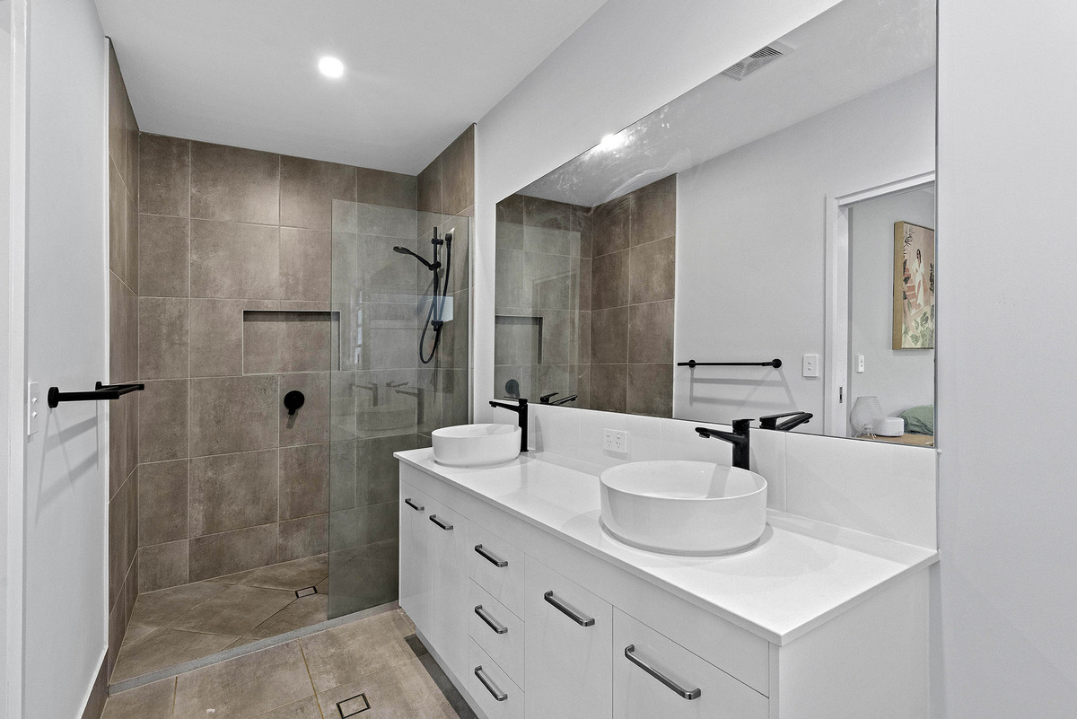 The master bedroom is a sanctuary unto itself, featuring a double basin ensuite and a spacious walk-in wardrobe, providing ample space for all your belongings. With an additional bathroom upstairs that services the other bedrooms and a convenient powder room downstairs, there’ll be no more waiting in line during busy mornings.