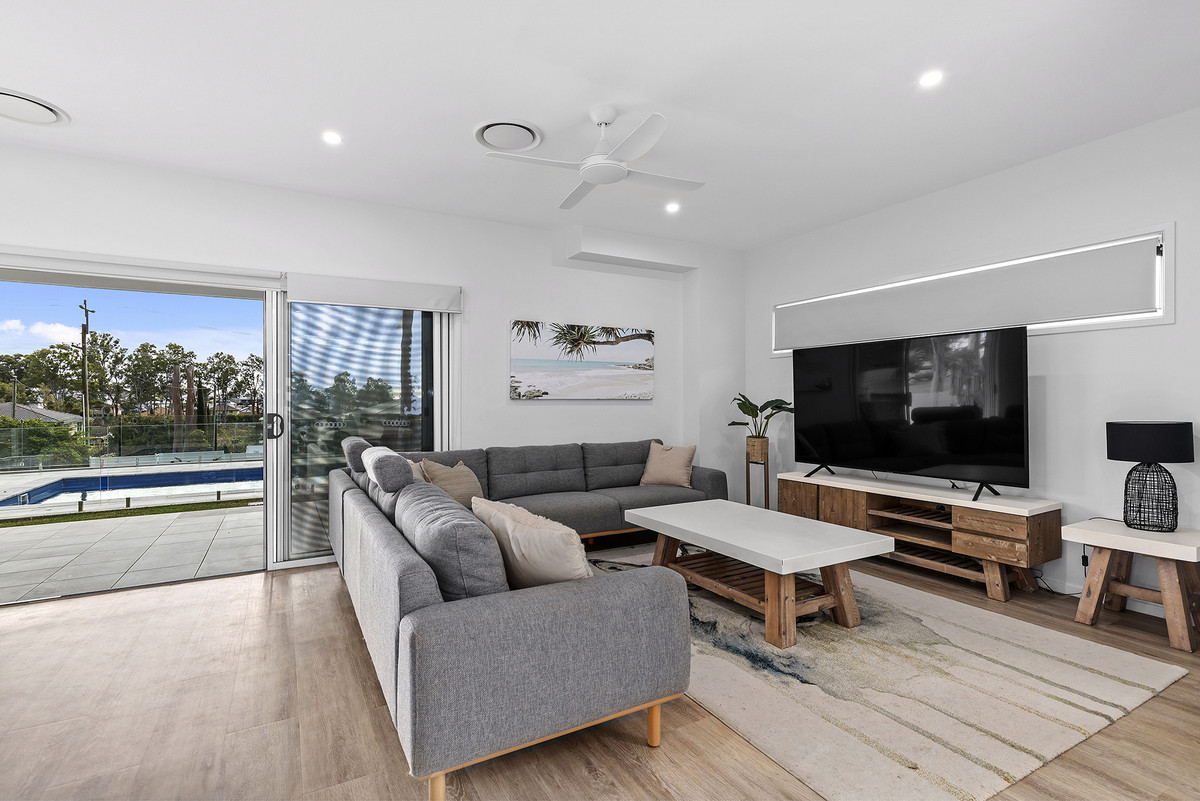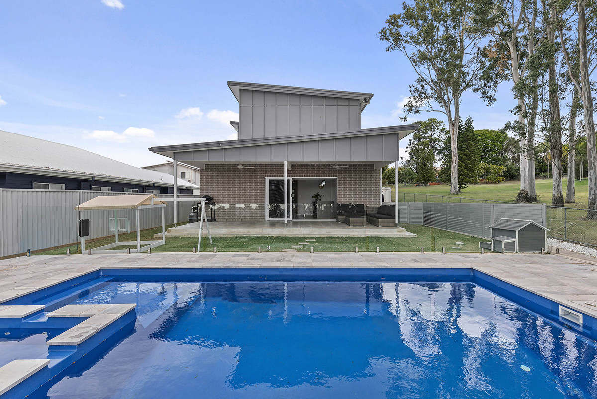 Situated strategically at the rear of the block, this home boasts an elevated position that captures amazing breezes and showcases breathtaking views directly from the kitchen, where you can gaze upon the serene pool, creating a picturesque backdrop for everyday living. The chef’s delight kitchen comes complete with a butler’s pantry, ideal for hosting gatherings with loved ones.