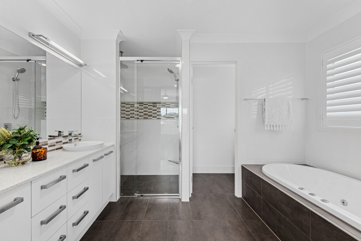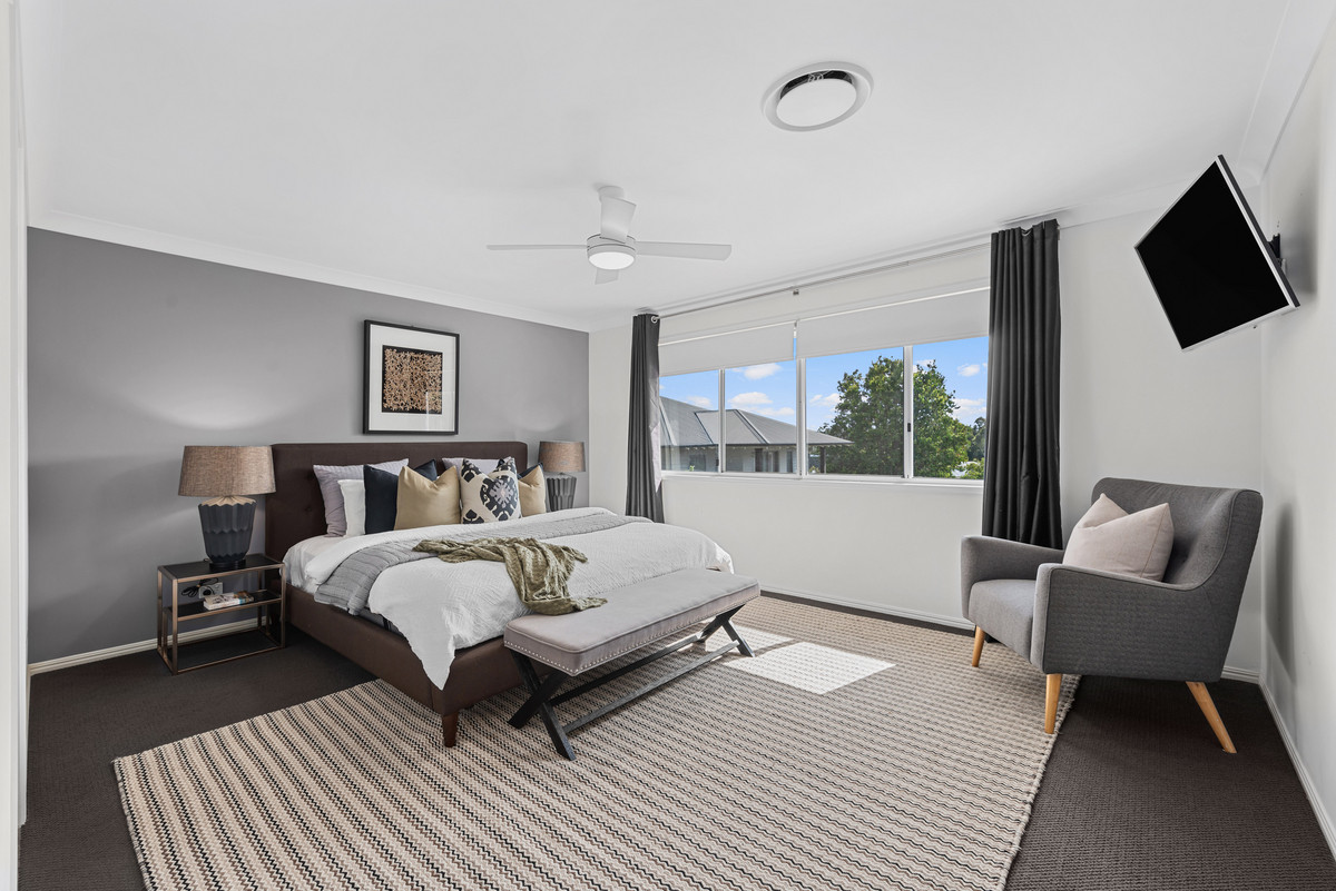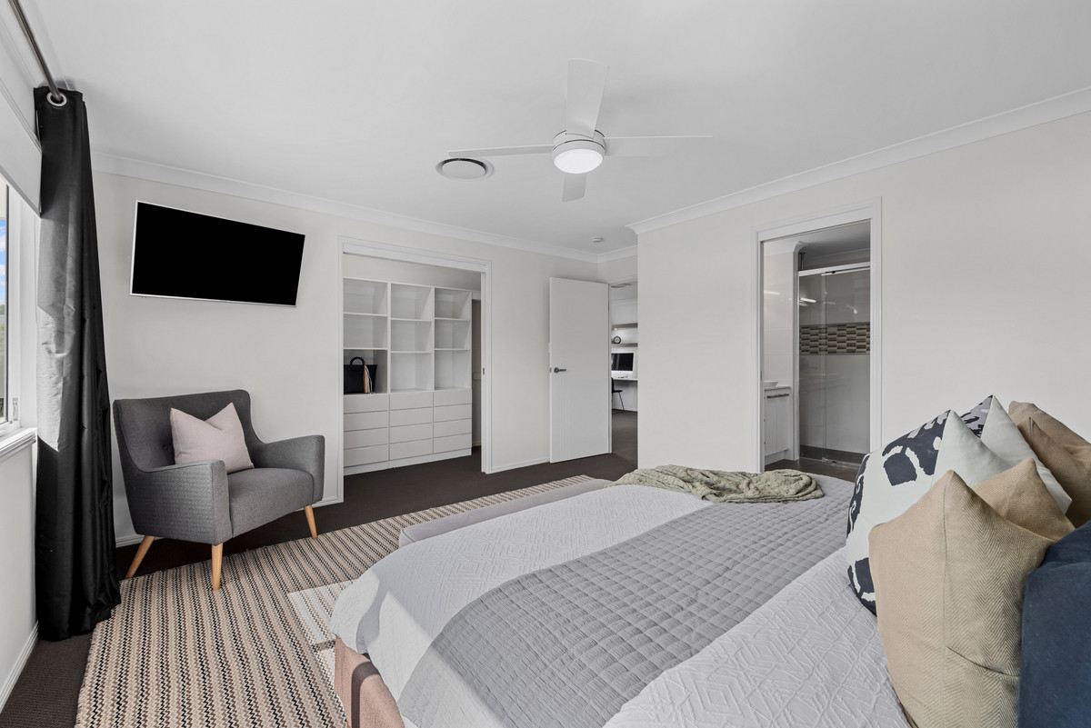The master suite has a large walk-in robe, distant neighbourhood views and ensuite with dual basin vanity and spa bath. The remaining bedrooms are also generously sized with built-in robes. Ducted air conditioning and ceiling fans will keep you comfortable all year round. Let’s not forget the solar system on the roof for even more benefit! Upstairs, you will also find another living area which is currently being used as an office.