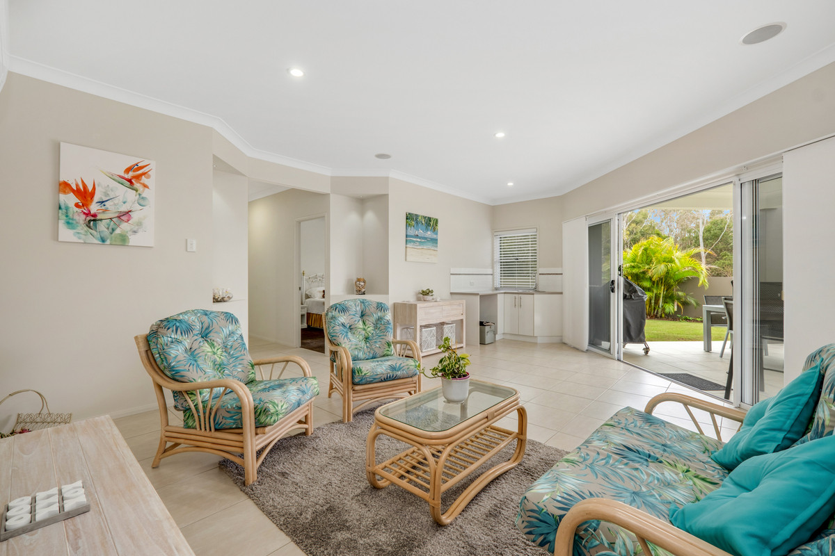 – Light-filled multipurpose living and dining area with kitchenette, flowing seamlessly to a spacious covered patio overlooking the landscaped garden