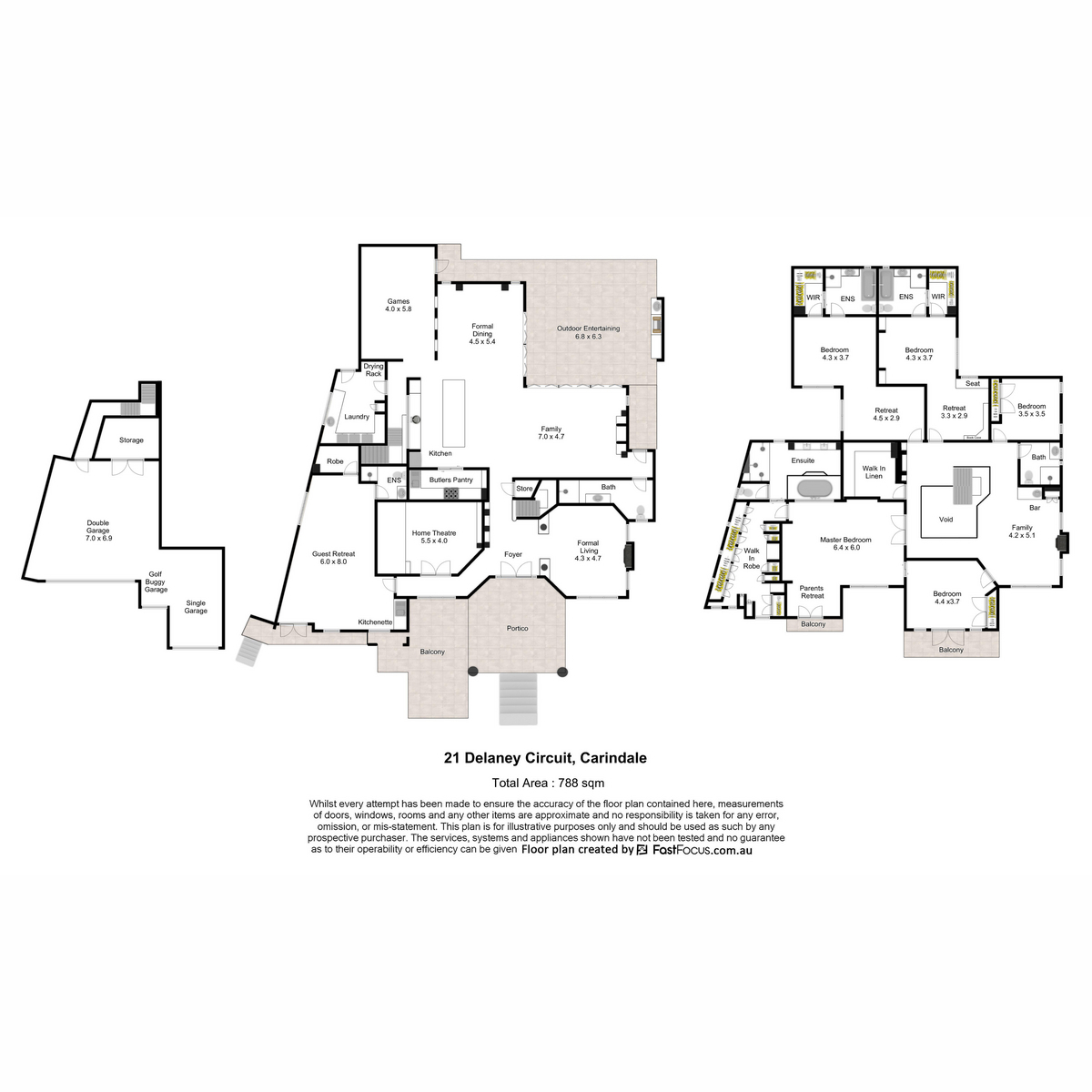 Retire to the upper floor where there are five large bedrooms, three of which are ensuited and host retreats. The master retreat boasts a Juliette balcony, a large walk-in robe with floor to ceiling cabinetry, ensuite with dual vanities, spa bath and a large triple shower. The fourth living area is also located on the upper floor.