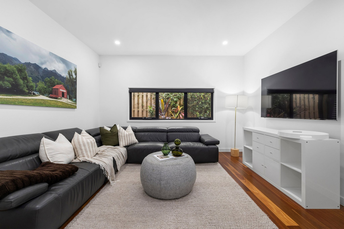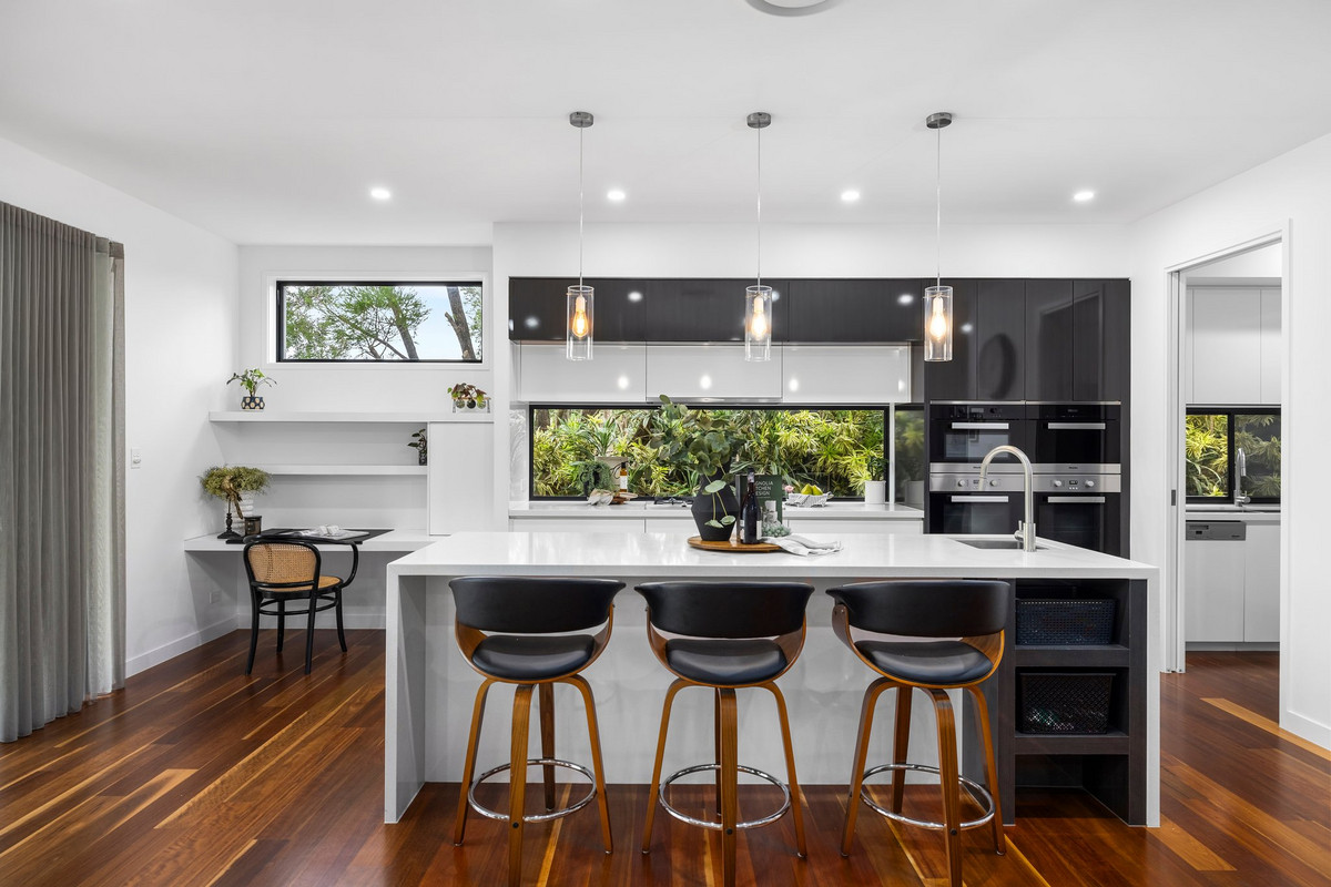 At the centre of it all is the open-plan living, kitchen and dining zone – a space that brings everyone together. The kitchen is sleek and functional, featuring stone benchtops, high-quality appliances and a butler’s pantry.
