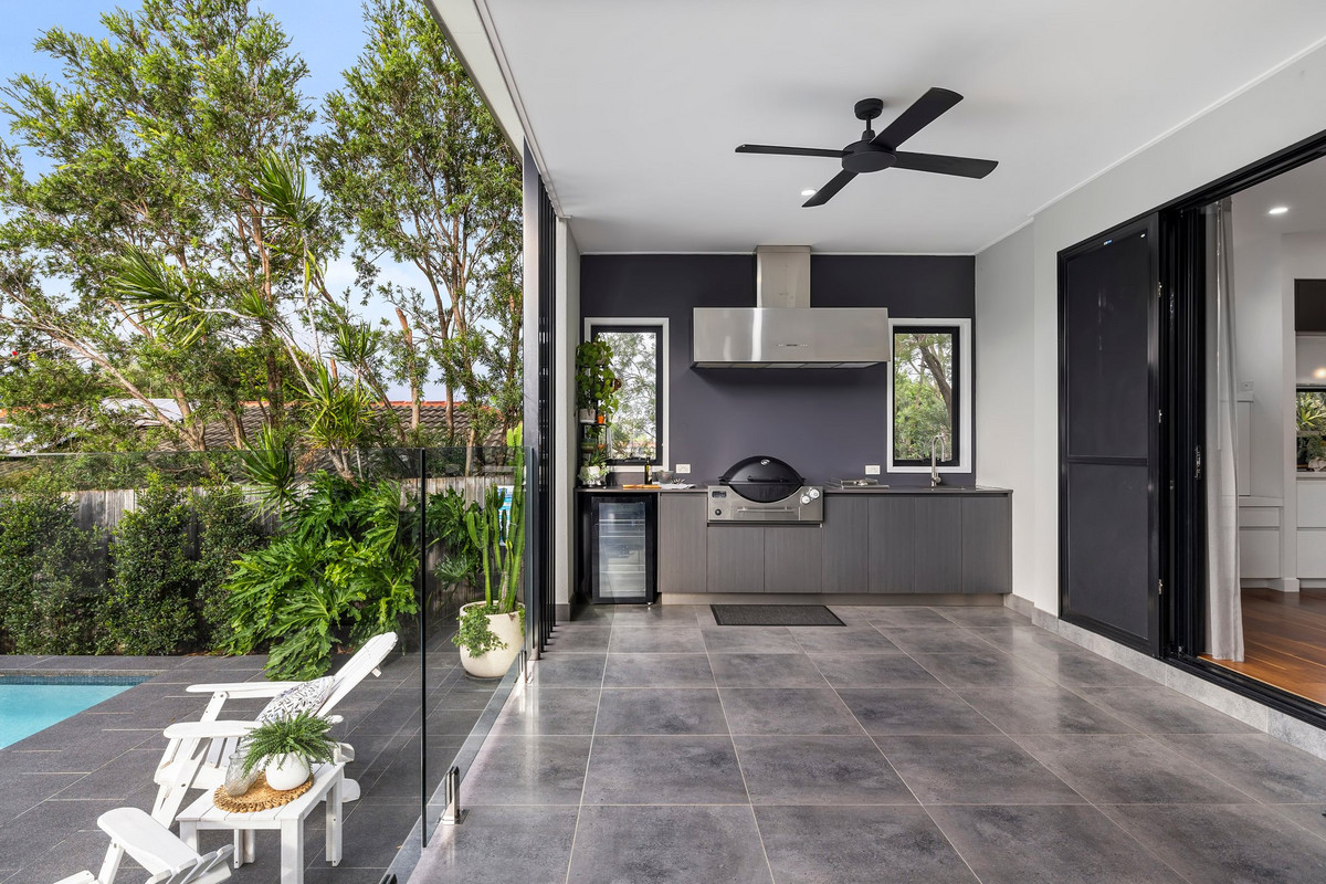 – Covered alfresco with built-in BBQ kitchen, tiled flooring and ceiling fans