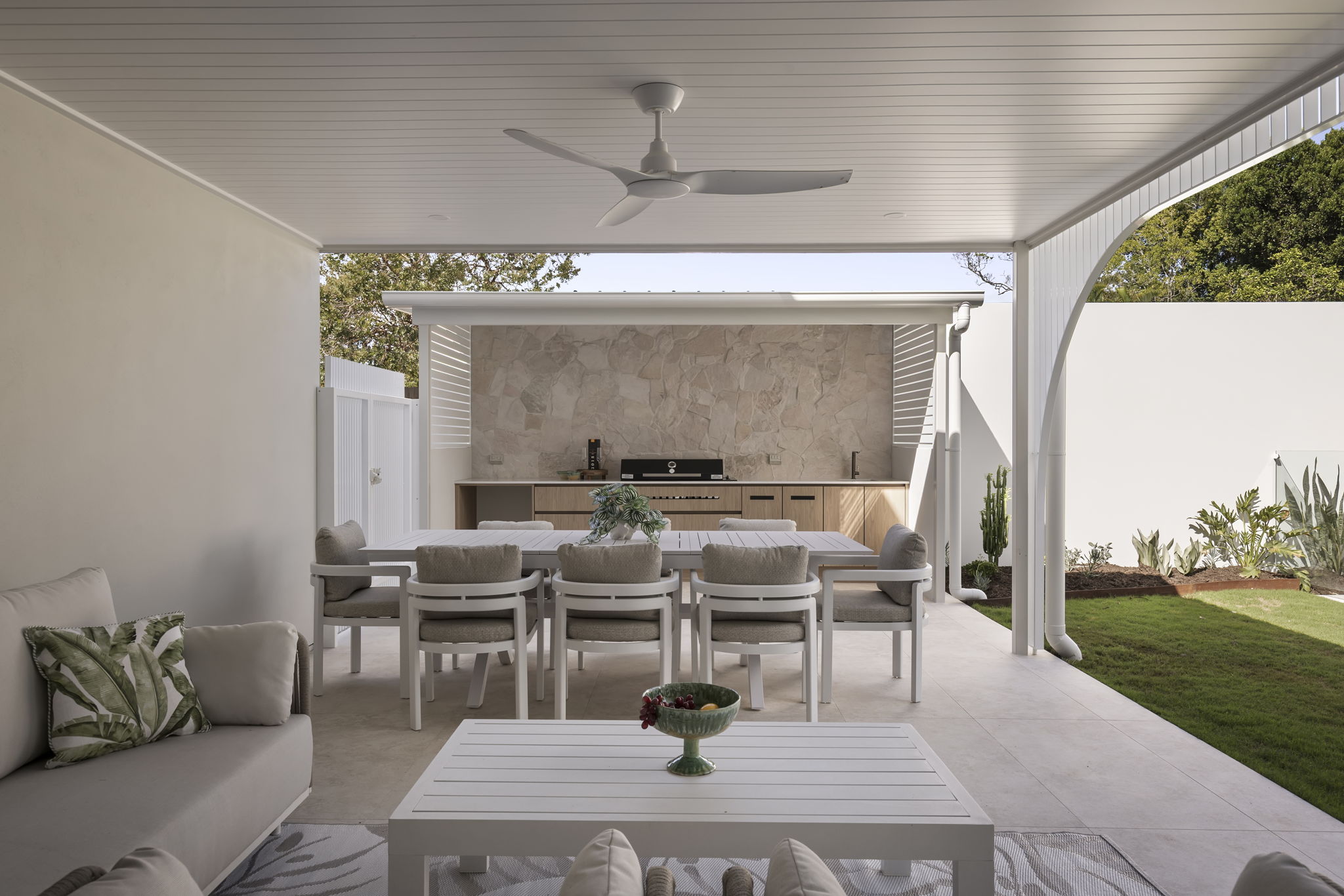 • Outdoor entertaining area with integrated Artusi BBQ, stone feature wall