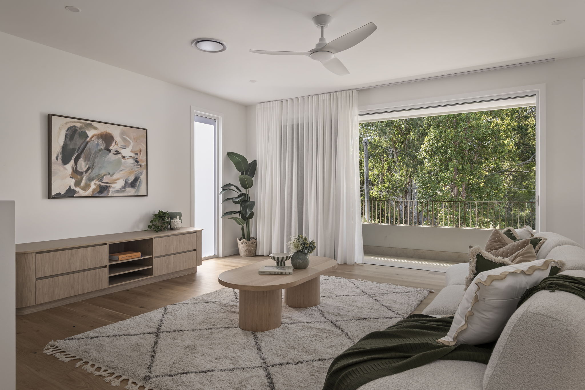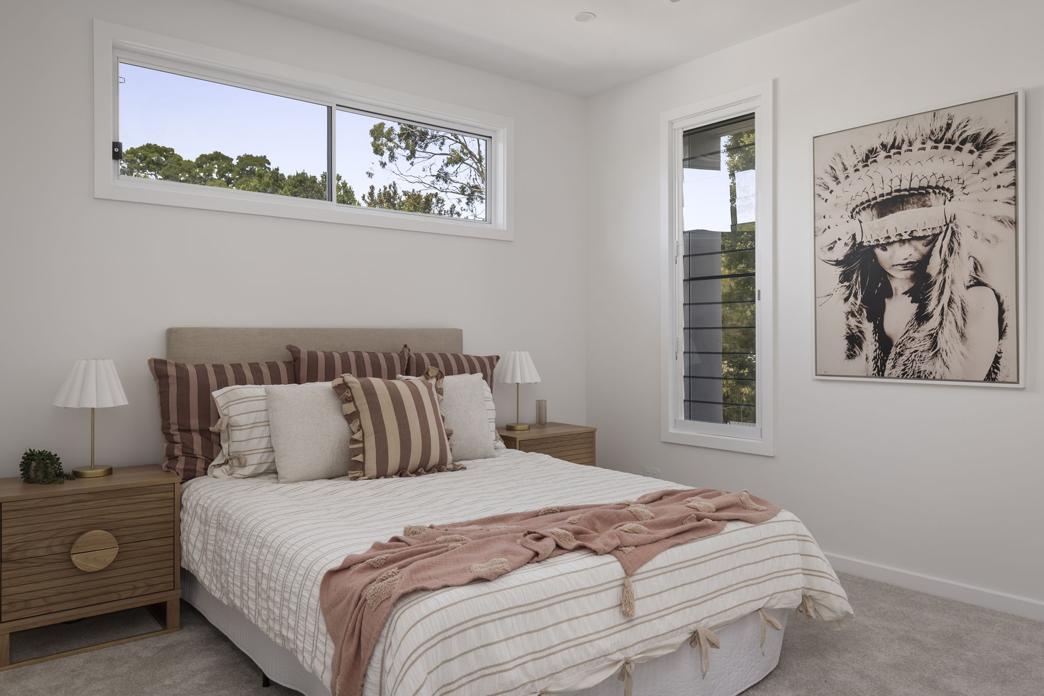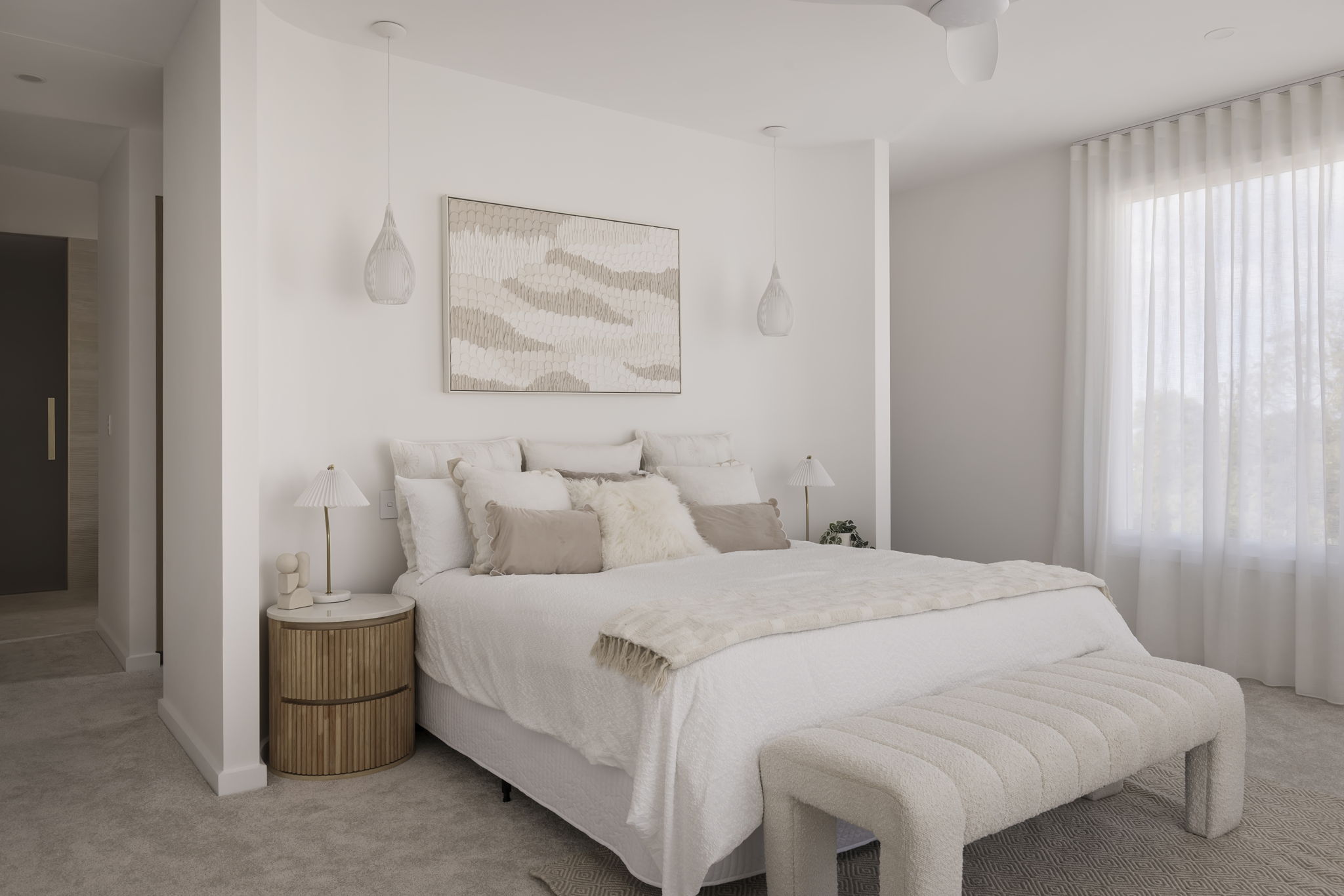 • Primary suite with curved feature wall, leafy outlook