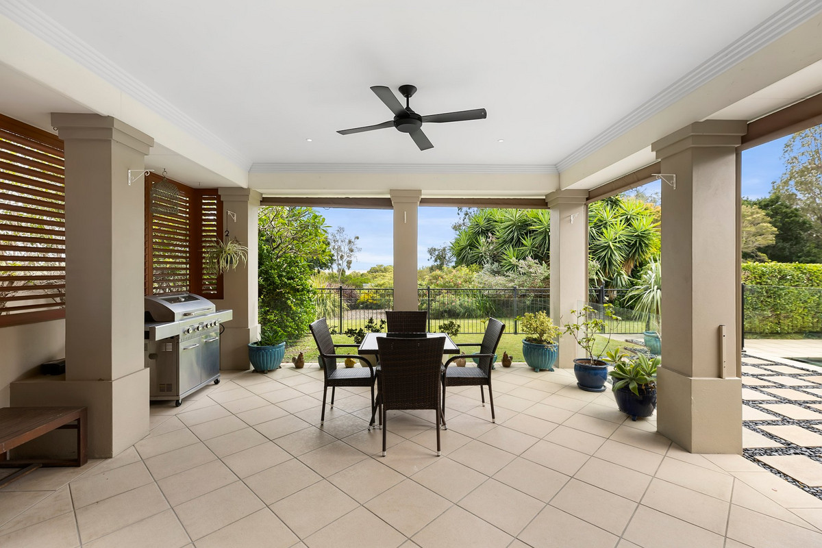 The outdoor areas take this home to the next level. A sparkling swimming pool surrounded by landscaped gardens offers the perfect escape on hot summer days, while the covered patio – with its ceiling fan and tranquil setting – is an entertainer’s dream. This property’s unbeatable position, backing onto a quiet reserve, ensures privacy and serenity.