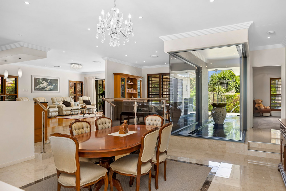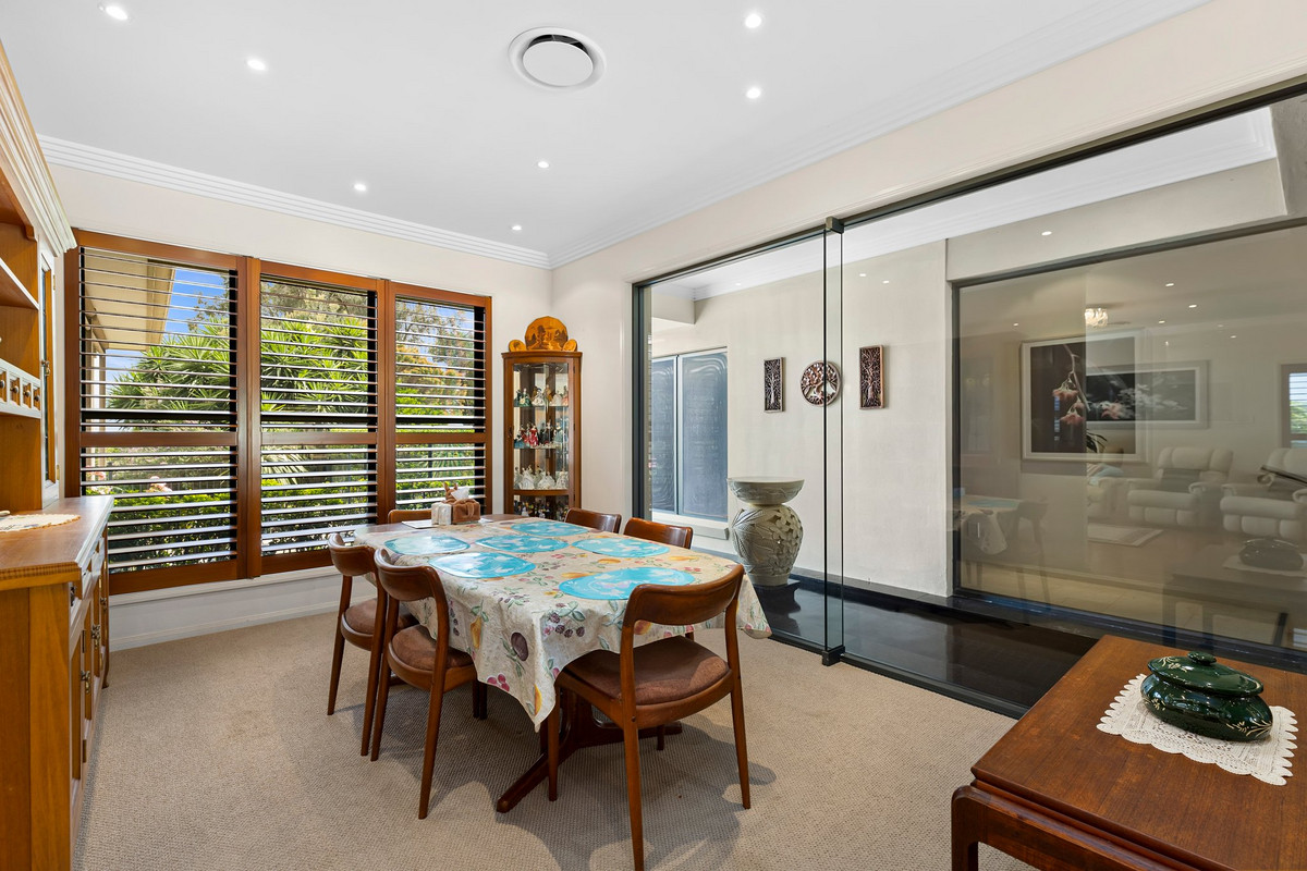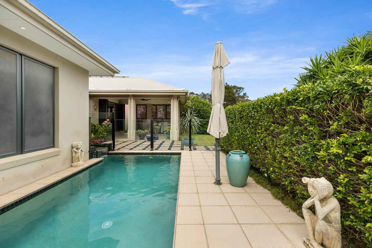 Step inside to discover a haven of light and space, where soaring high ceilings and expansive glass walls invite the outdoors in, bathing the open-plan living areas in natural light. The seamless connection between the interior and the covered alfresco area creates the perfect setting for entertaining, all while overlooking the glistening solar-heated pool positioned to take full advantage of its sun-drenched aspect.