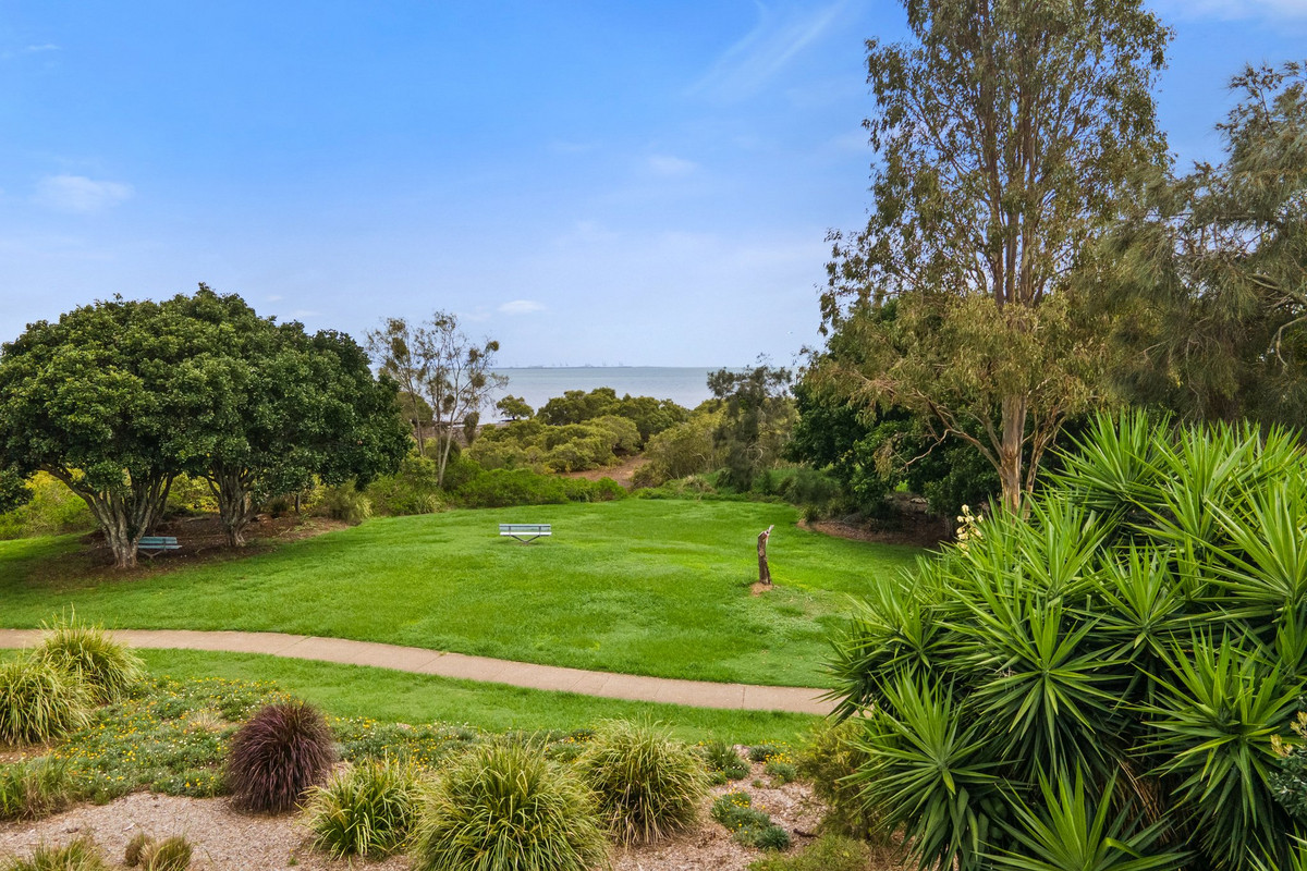 From the moment you arrive, the home’s striking façade, framed by pristine gardens and a paved driveway leading to a double garage, sets the tone for the sophistication within. Inside, the open-plan living spaces flow effortlessly, with polished timber floors reflecting the natural light that pours through large windows and sliding doors. These living areas seamlessly connect to a covered alfresco patio, where you can relax and enjoy the peaceful parkland backdrop and cooling bay breezes.