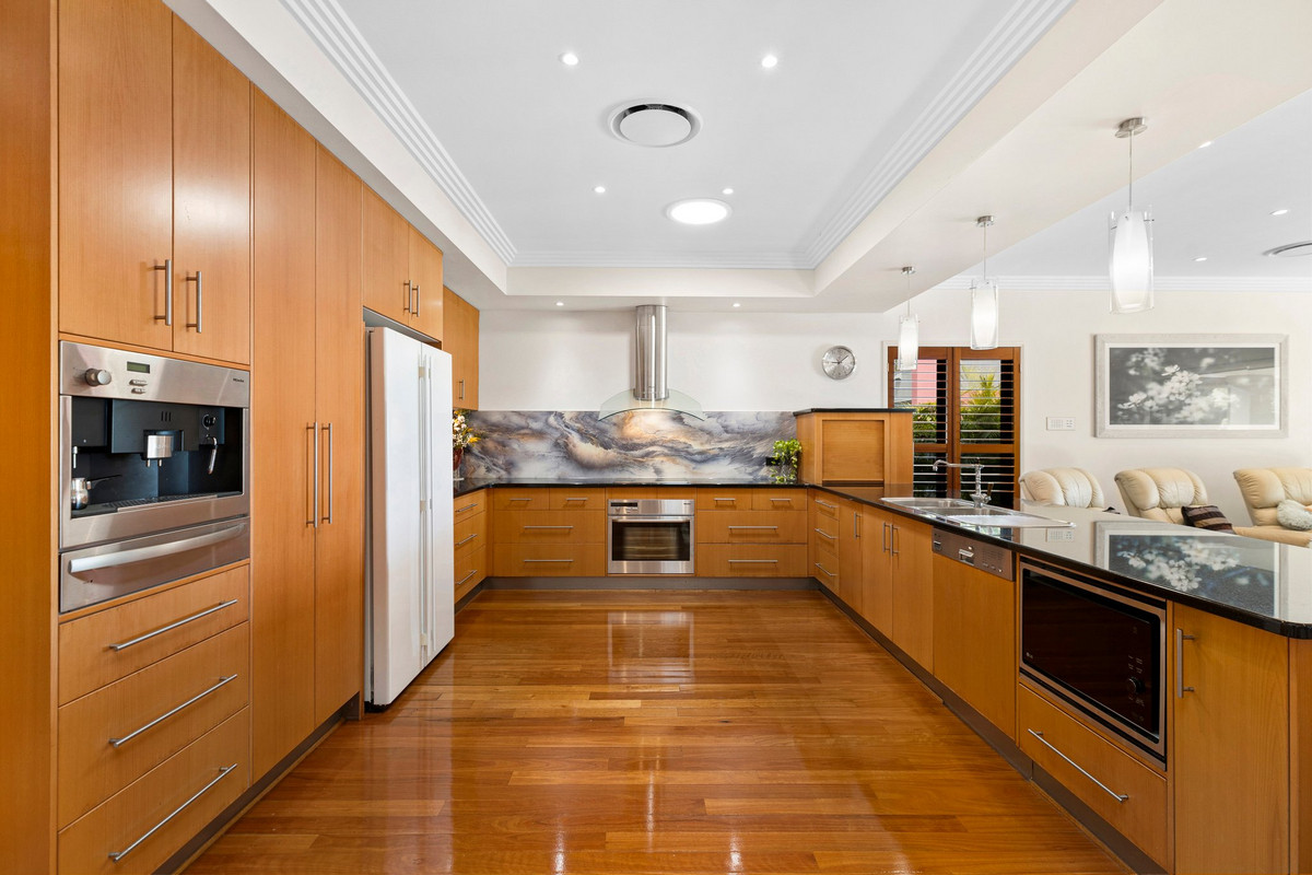 This residence features four generous bedrooms, each offering privacy and comfort. The primary suite is a true retreat, complete with a sumptuous ensuite and walk-in robe. A versatile fourth bedroom doubles as a home office, complemented by a bespoke wine cellar to elevate any occasion. Multiple living spaces provide flexibility for families, while the thoughtfully designed layout ensures effortless flow throughout.