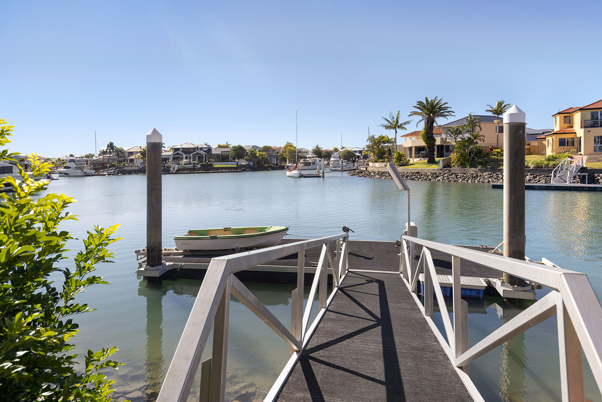 Step outside to your personal oasis, encompassing a sparkling inground pool, expansive lounging areas, and a private pontoon for your boat or jet skis. The fully fenced 865m2 block welcomes you with electric gates leading to a tiled double garage, offering additional storage space. Prepare to be awestruck; this home must be experienced to truly comprehend its magnificence.