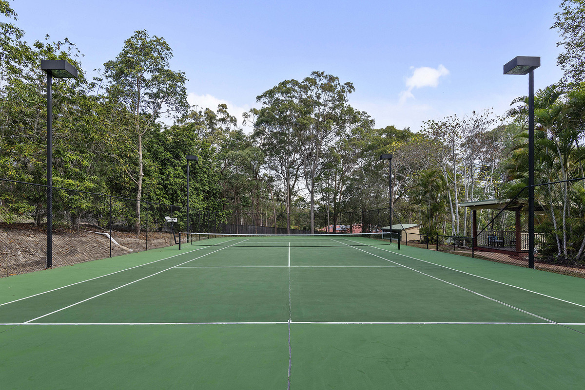 Enjoy your own private recreational paradise with a tennis court featuring floodlights for daytime and nighttime play, as well as a refreshing saltwater swimming pool where you can unwind and entertain in style.