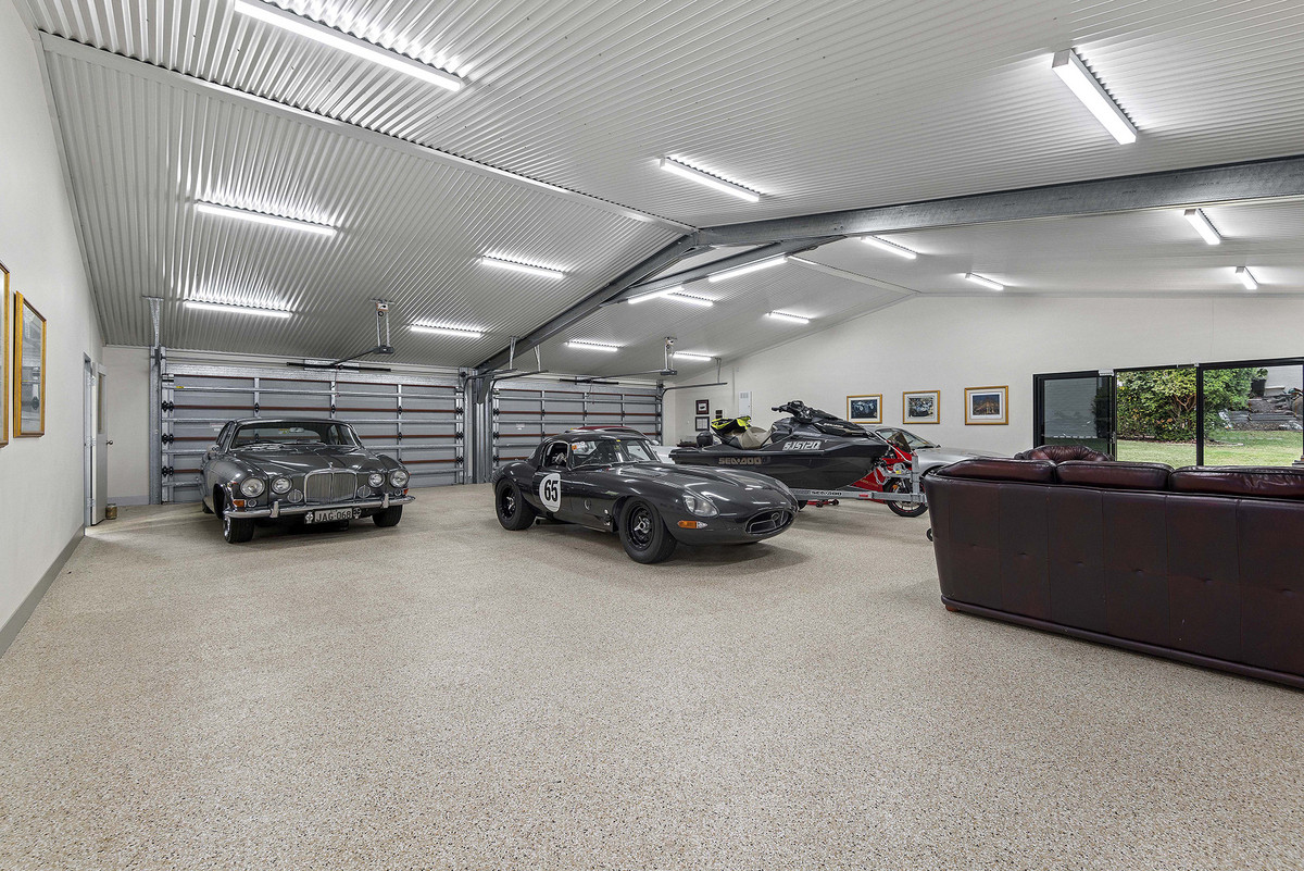 For car enthusiasts, the expansive 12-car garage is a true masterpiece, complete with a powered hoist to elevate your automotive passions.