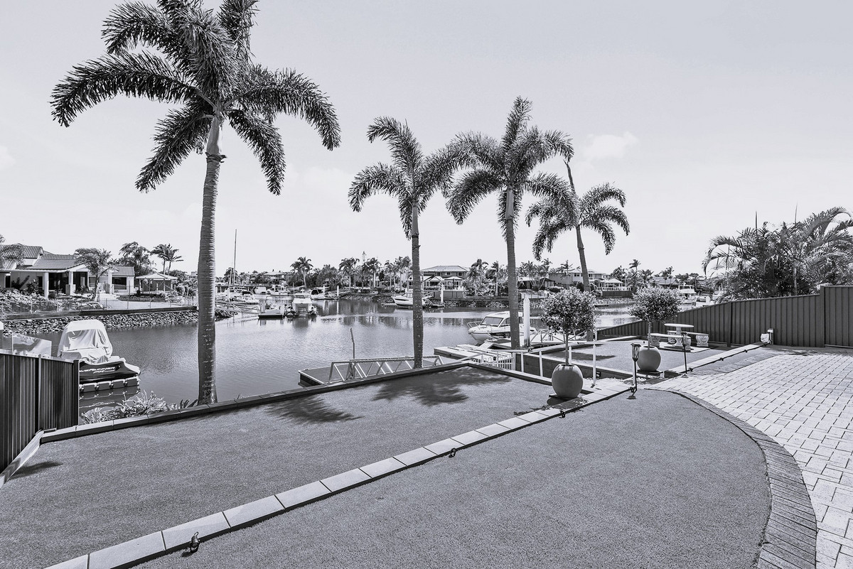 Perched on an elevated 860sqm land parcel with 17.4m of prime canal frontage, indulge in direct access to the breathtaking Moreton Bay from your private pontoon.