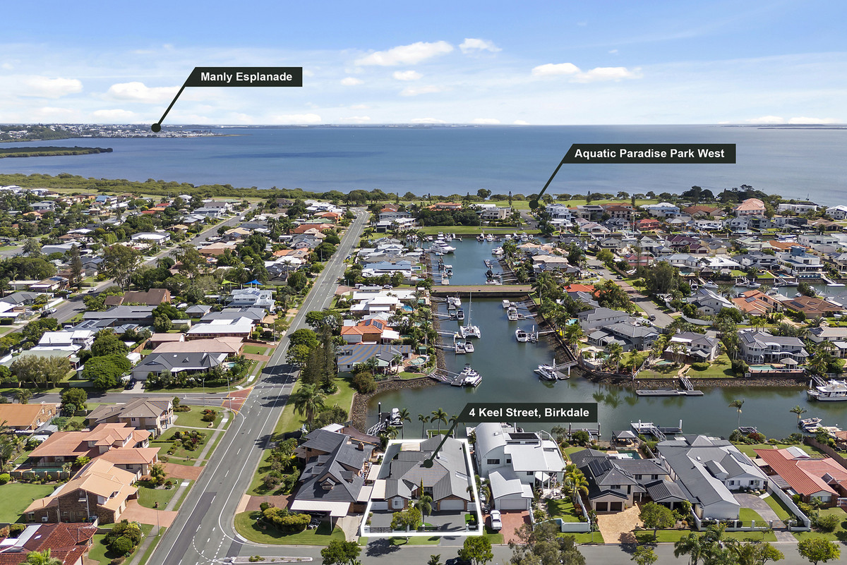Conveniently located mere moments from Birkdale Fair, public and private schools, transport options, parks, and dining establishments, experience the epitome of waterfront living in the beautiful Aquatic Paradise.